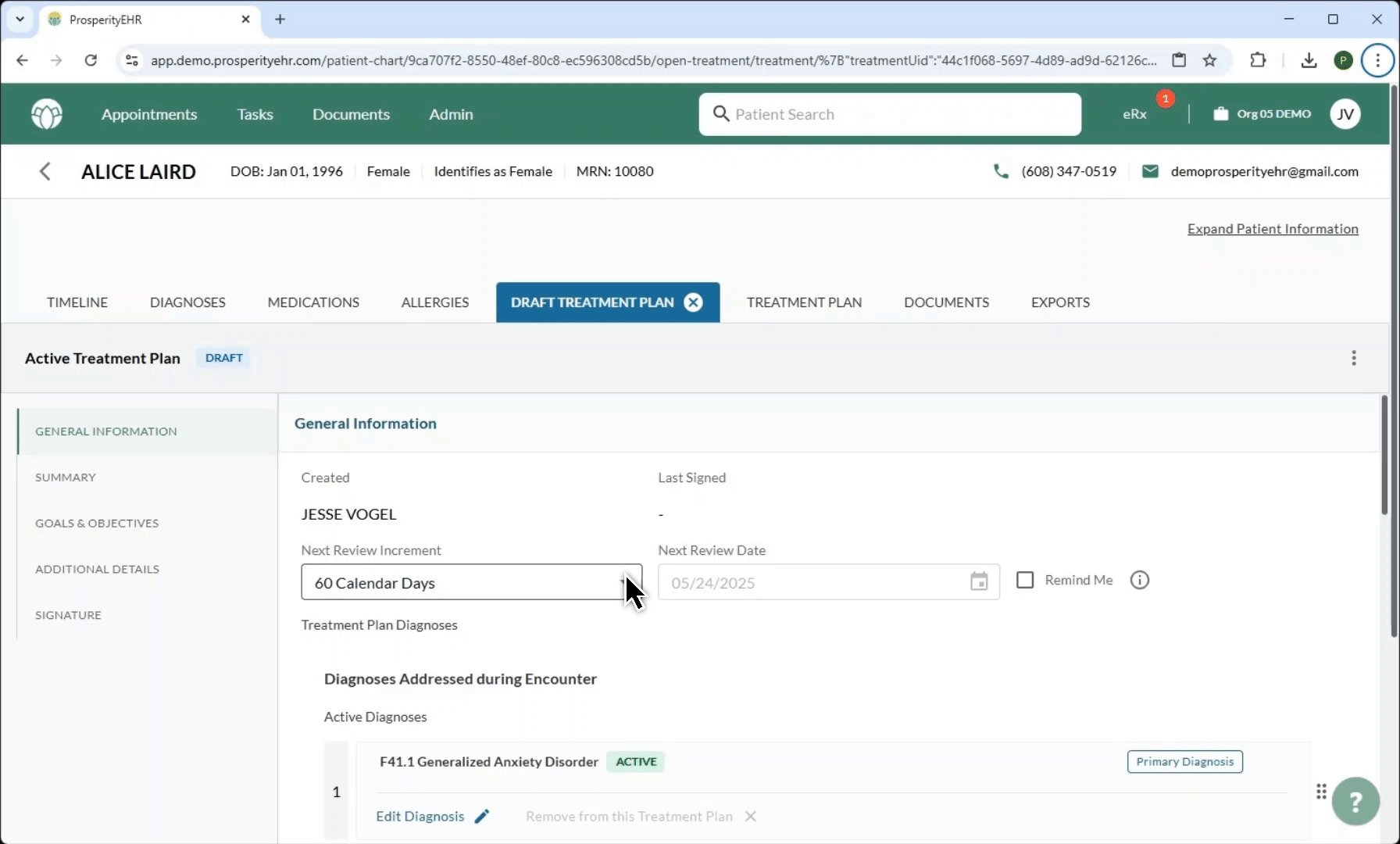 - Review Scheduling: Set automated review increments to keep treatment plans updated and relevant.